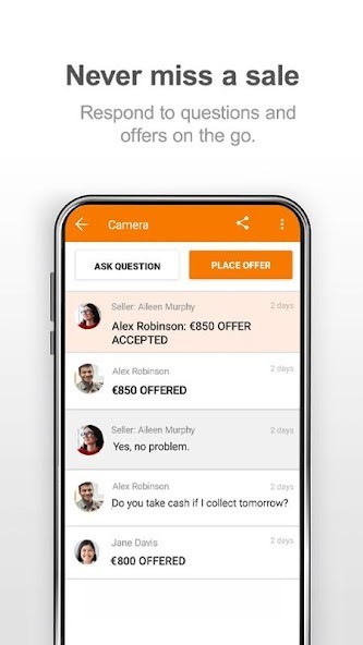 • Ask questions by publicly commenting on the ad's page and finalise deals through instant private messages.