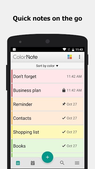 It gives you a quick and simple notepad editing experience when you write notes, memos, e-mails, messages, shopping lists and to-do lists. Taking notes with ColorNote® Notepad is easier than any other notepad or memo pad app.* Notice *