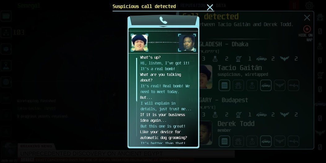 Use modern invigilation techniques, gather information, search for important members of terrorist networks and prevent devastating attacks. Decide who should be spied on and who should be neutralized. Discover Islamic World Caliphate cells all over the world. Fight far-right terrorism in United States and Europe. Uncover hidden truth about dangerous sects planning to take over the world. Some of decisions will be tough, but you have to act surely and quickly. Terrorism never sleeps.GAMEPLAY