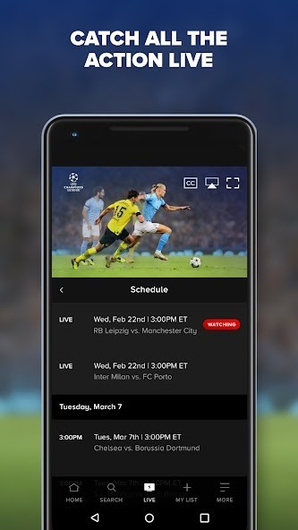 • Watch live sports like NFL on CBS & UEFA Champions League.