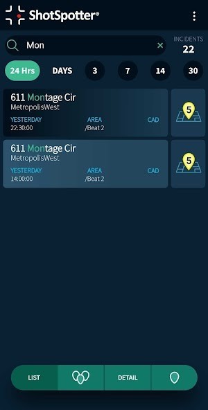 - Customize gunfire alerts using user-selectable ShotSpotter coverage areas