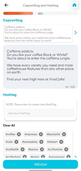 Step 4: Pick and adjust the suggested copywriting for your ad, as well as the generated hashtags